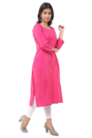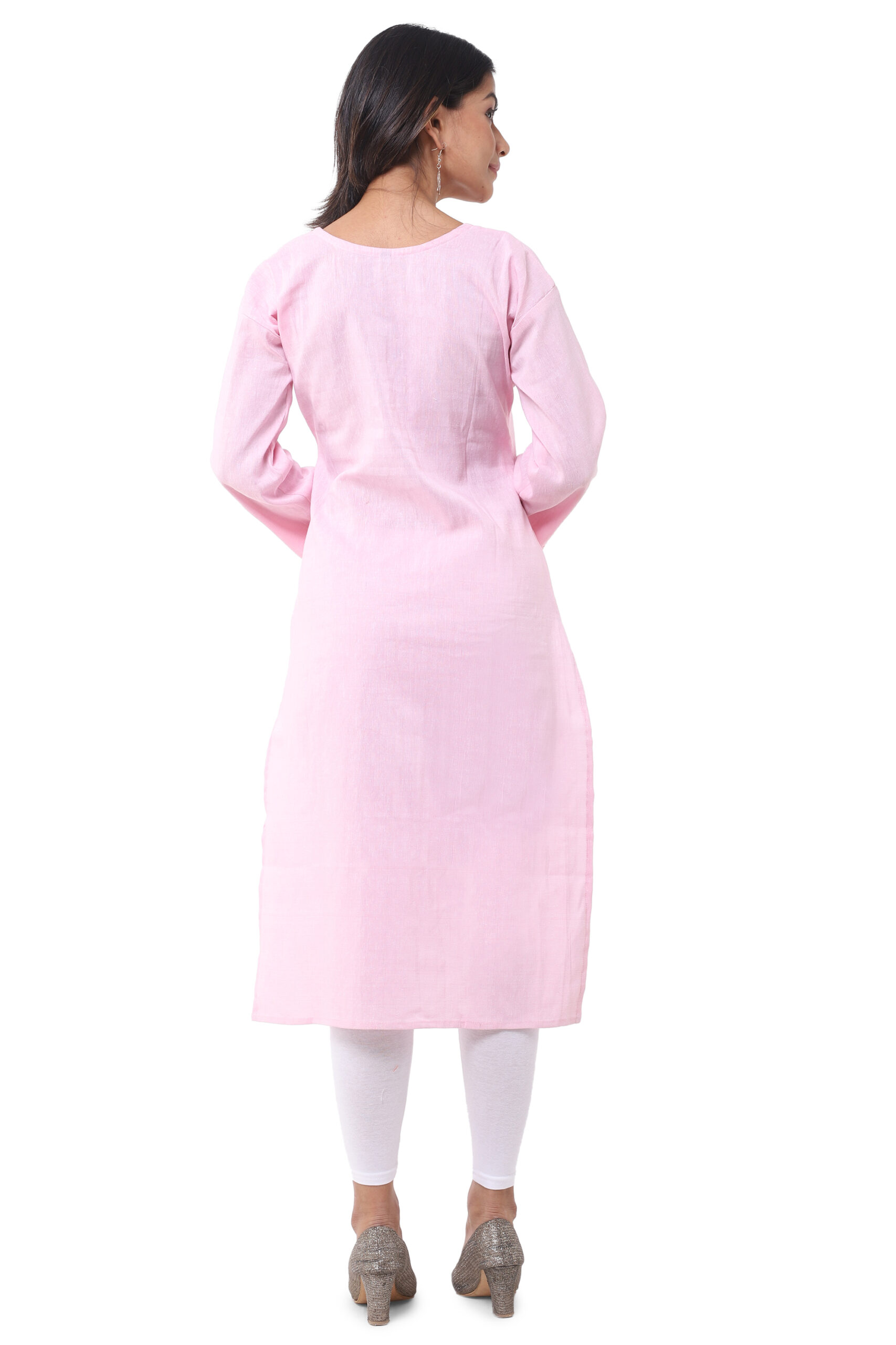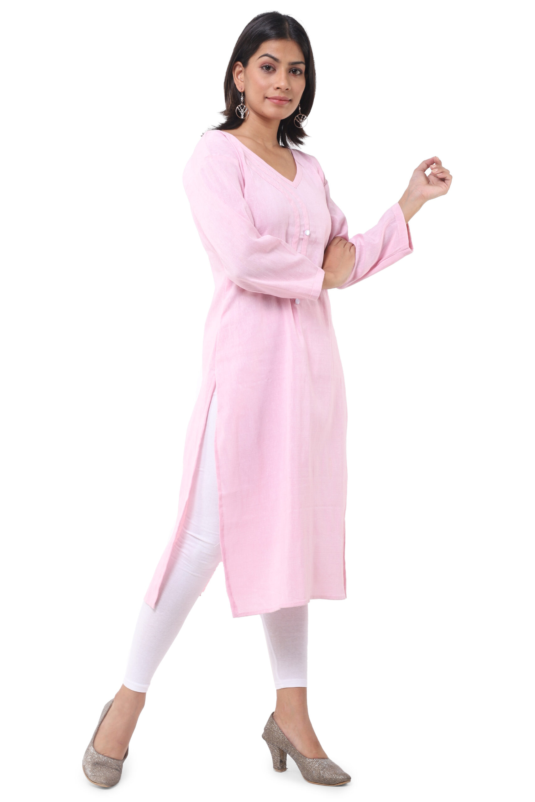 Women’s Khadi Cotton Pink V-Shape Neck Kurti